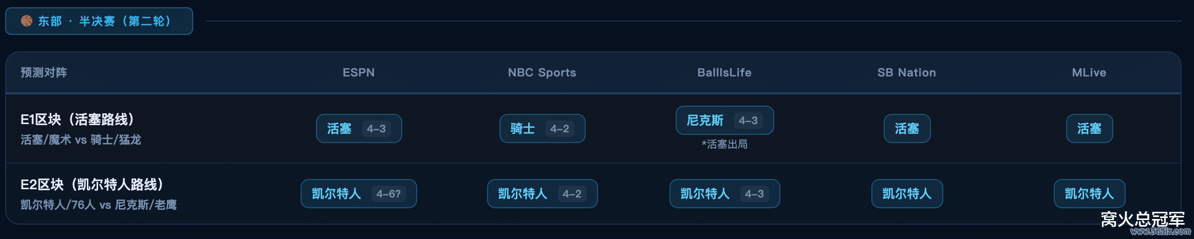 到了次轮终于开始有了明显的差异,先看东部半决赛的: